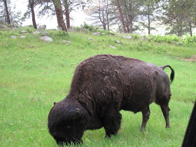 We continued with a really great drive of twists and turns through a Black Hills National Forest and Custer State Park. I enjoyed the ride with my head out the car when suddenly these guys are staring at me from across the mountainside! Can you see them?  I thought it was spooky at first.